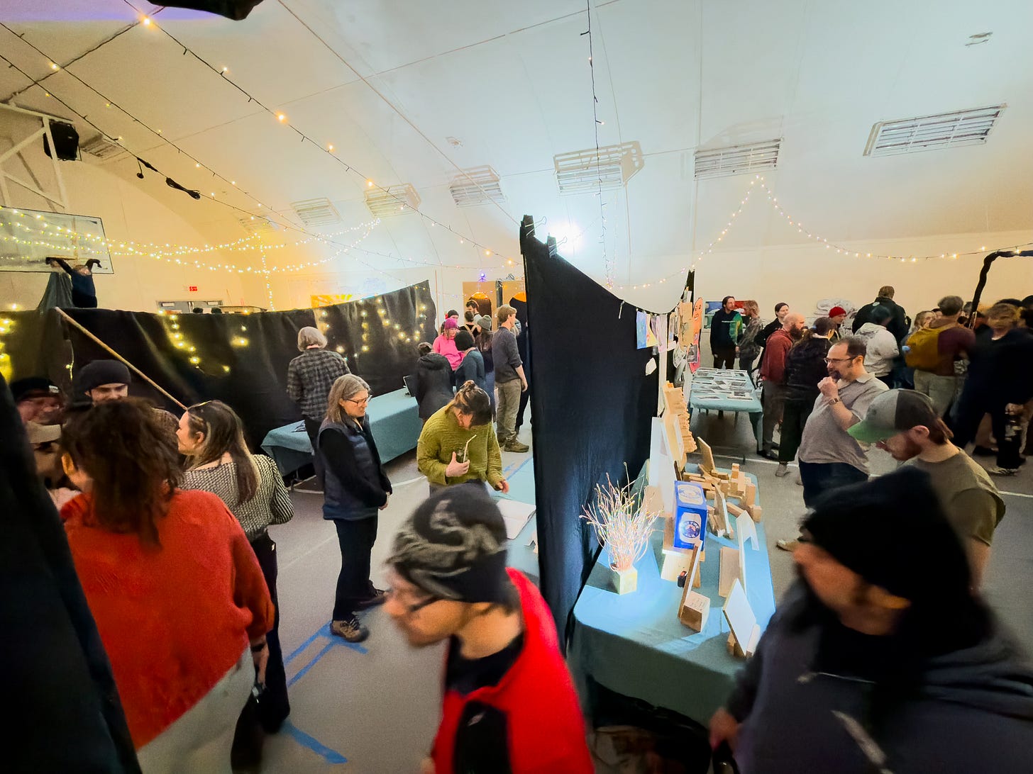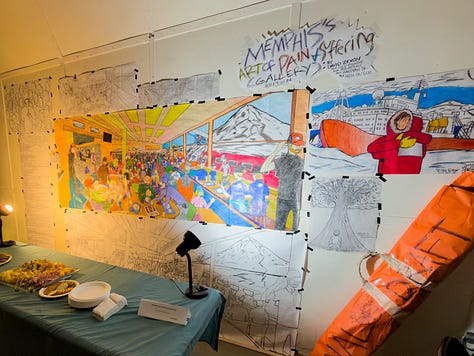 On to more happy and upbeat notes, last weekend we all got to visit MAAG, the McMurdo Alternative Art Gallery. It took place in the big gym (where basketball, pickleball, and rock climbing all are) and was full of such a variety of art. Everything from acro-yoga and live bad haircuts to incredibly intricate knit blankets and a 6 foot long mural. There was way more than I can recap here, but it was super inspiring to see how expressive people down here are and how much fun everyone has despite it being such a harsh environment. Some other standouts were a replica of the transition (complete with vans, tractors, deltas, and real snow), a smattering of undereye masks on a piece of cardboard, and a book on good or bad fortune as determined by birds crossing in front of your field of view. Anything and everything under the sun was allowed and encouraged.